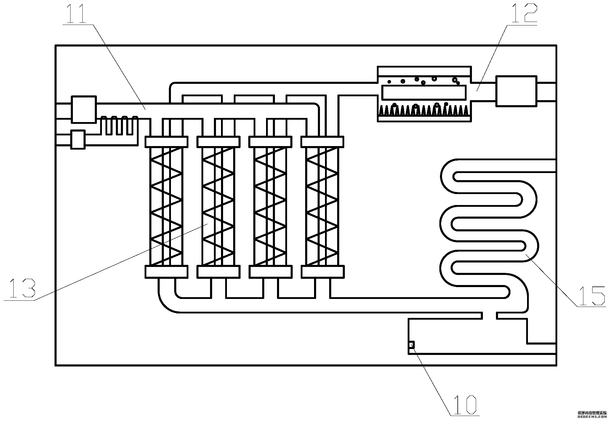 所述混合處理模塊(13)的輸出端分別與冷凝彎管(8)和儲液箱(9)的入口相連;